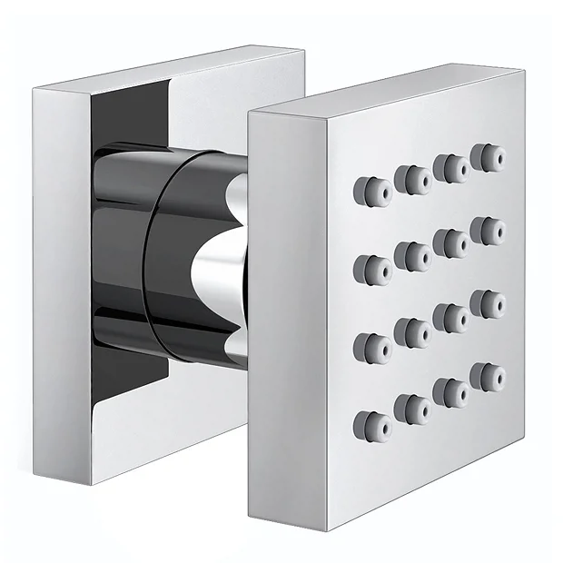 A stylish adjustable anti-limestone flat square body jet with 16 nozzles, the Milan body jet has been constructed from durable brass with a quality chrome plated finish. Shower body jets add a luxury touch to your shower. Perfect for creating a shower that massages you. Although sold individually, body jets are normally used in sets of four or six and require high flow rates when used in conjunction with an overhead shower.