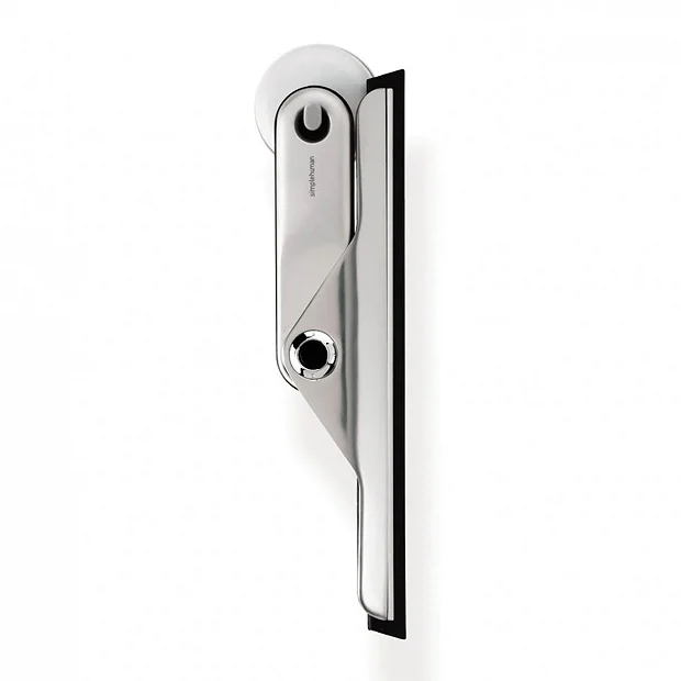This simplehuman foldaway squeegee has a weighted handle and precisely angled blade for a smooth glide across glass surfaces. It’s die-cast zinc handle provides a comfortable grip and folds parallel to the blade for compact storage. Comes supplied with a suction hook for easy storage.